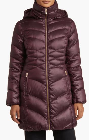 Women's Removable Hood Puffer Coat In Burgundy