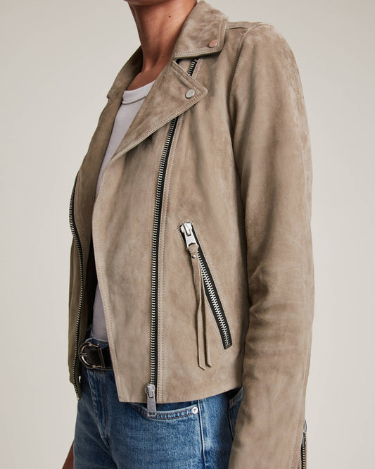 Women's Suede Leather Biker Jacket In Tan Beige