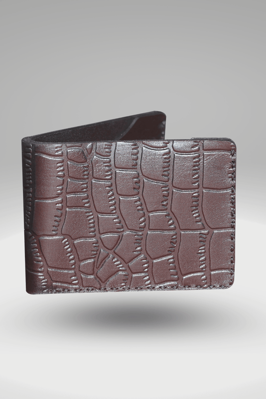 Men's Black Genuine Cowhide Leather Wallet With Crocodile Textured Finish | Bifold Hand-Made Leather Mini Wallet