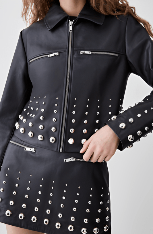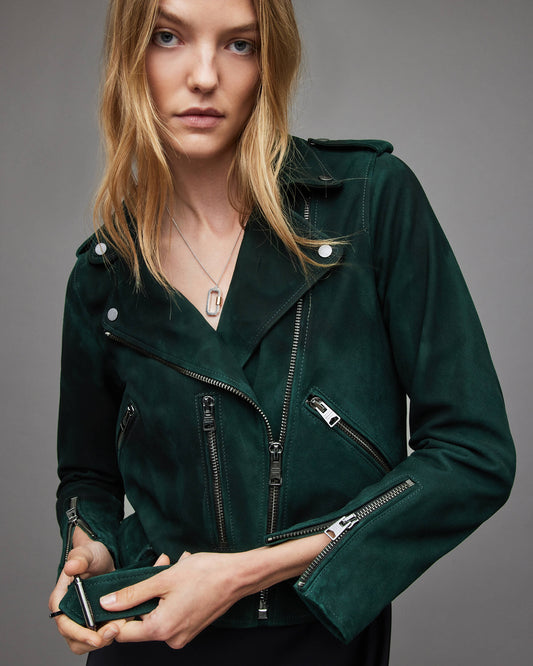 Women's Suede Biker Leather Jacket In Royal Green With Belt