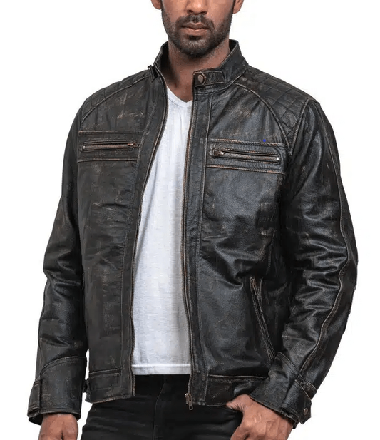 Men's Vintage Cafe Racer Leather Jacket In Dark Brown