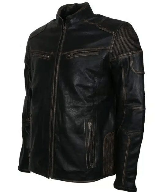 Men's Vintage Cafe Racer Leather Jacket In Black