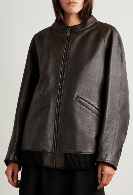 New York Limited Edition Letterman Bomber Leather Jacket In Black
