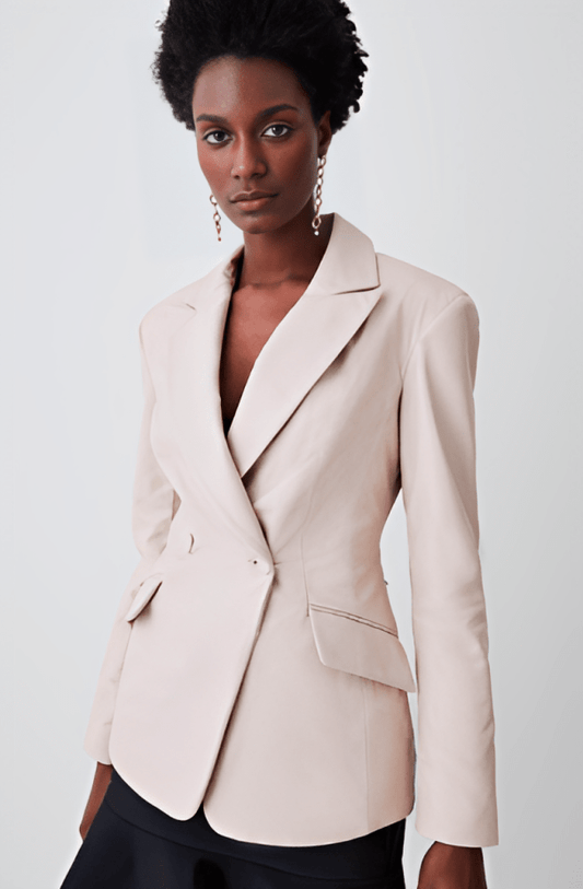 Women's Leather Blazer In Tan Brown With Corset Waist