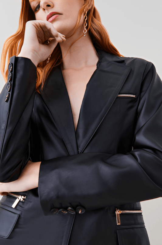 Women's Oversized Studded Bomber Leather Jacket In Black