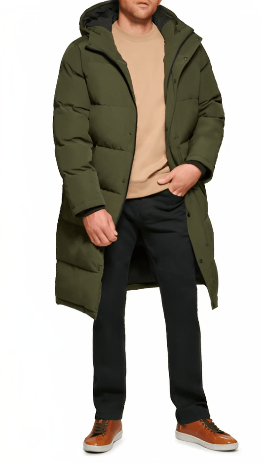 Men's Trench Puffer Coat In Khaki With Hood
