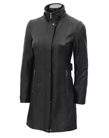 Women's Fur Parka Leather Coat In Black With Removable Hood