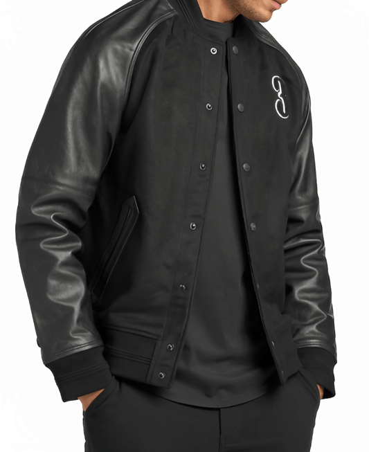 Men's Black Varsity Bomber Leather Jacket