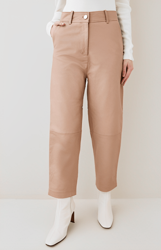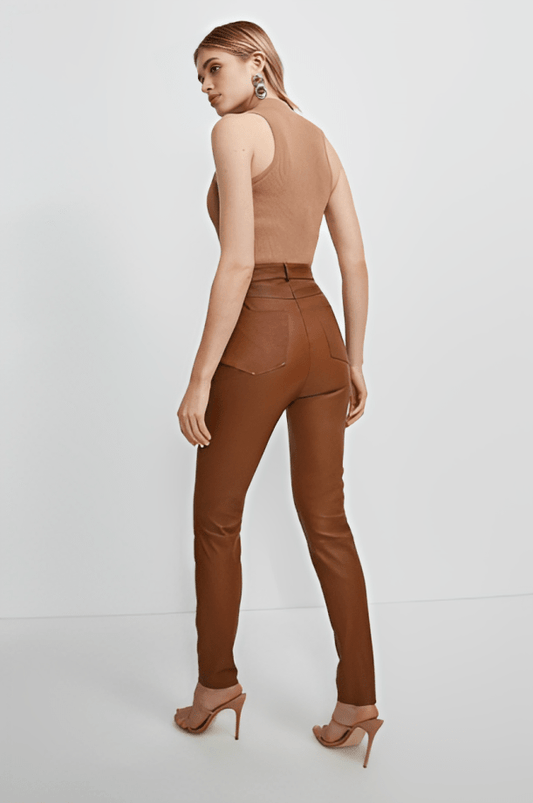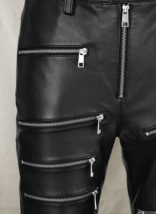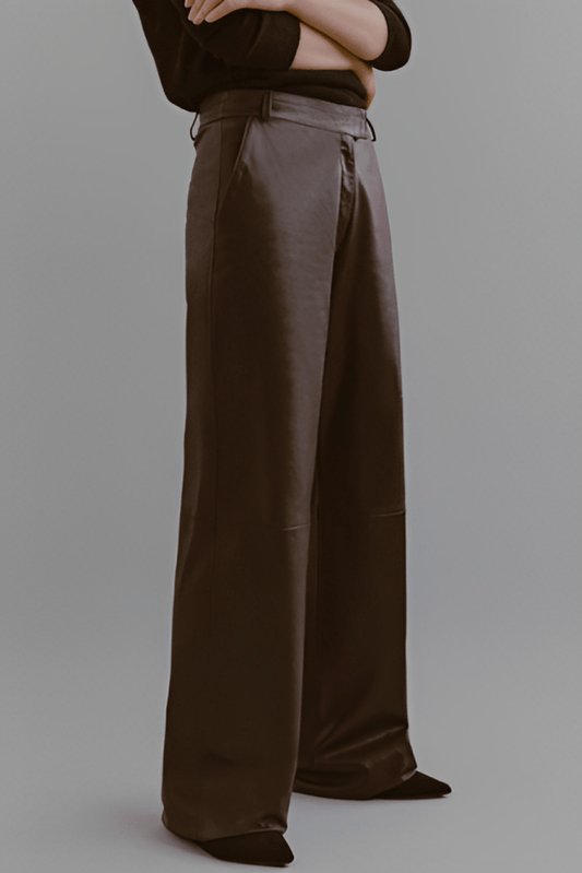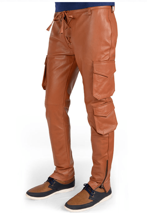 Men's Leather Pant In Dark Brown With Rib Knit Ankles