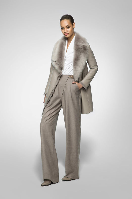 Women's Shearling Fur Leather Coat In Light Gray