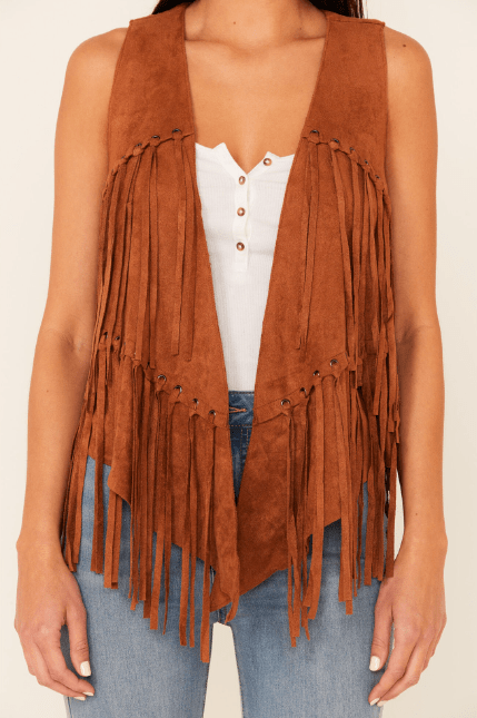 Women's Oversized Shearling Leather Vest In Tan Brown