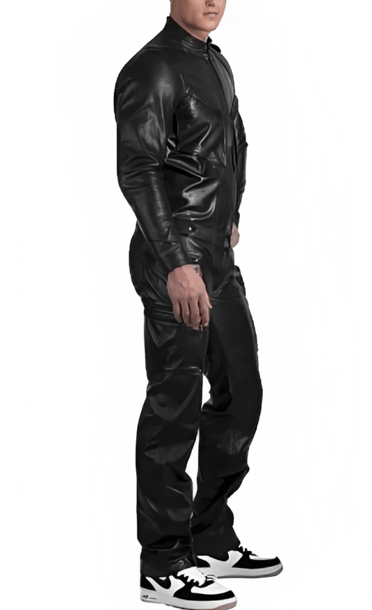 Men's Black Leather Jumpsuit
