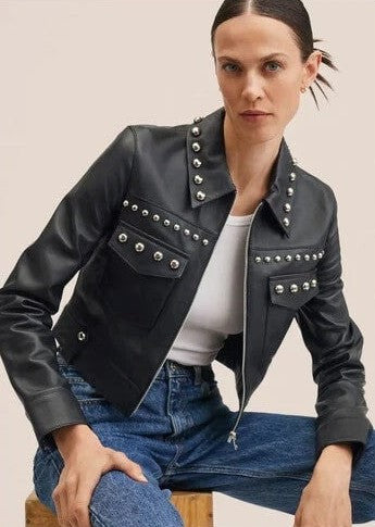 Women's Black Studded Leather Jacket