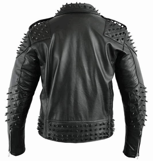 Men's Studded Black Biker Leather Jacket