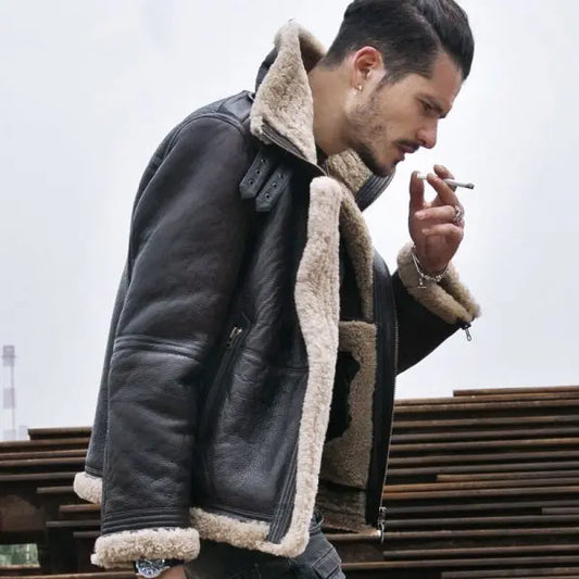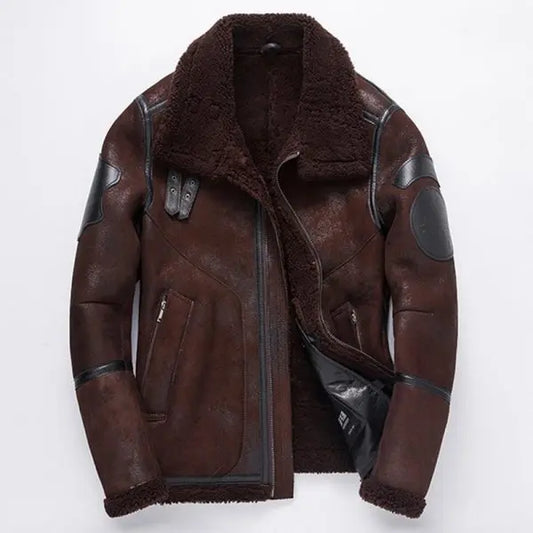 Men's Shearling B3 Fur Leather Jacket In Chocolate Brown