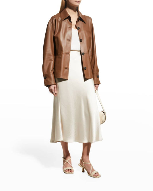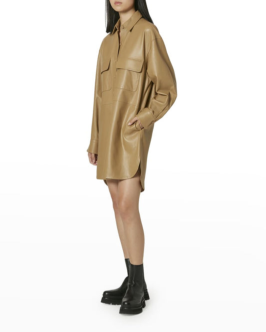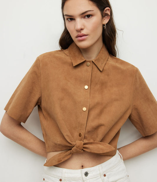 Women's Full Sleeve Leather Shirt In Tortilla Brown