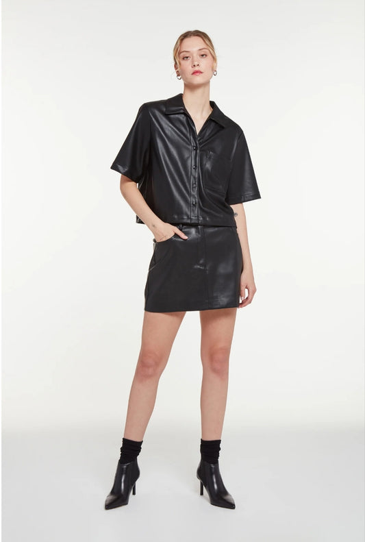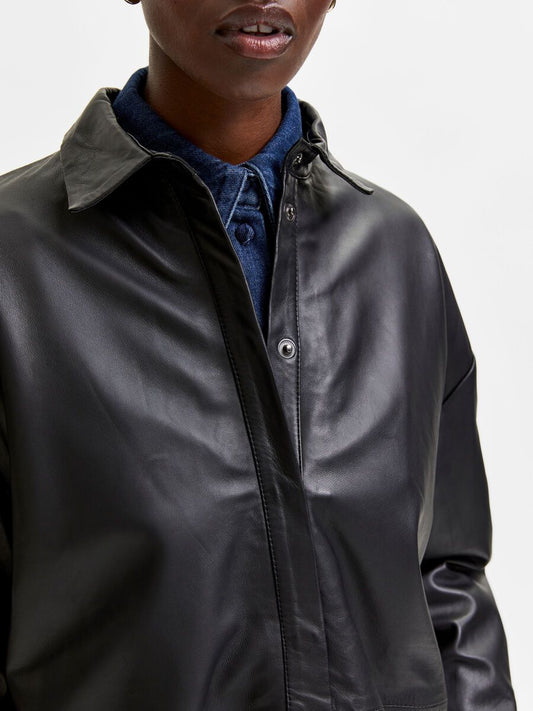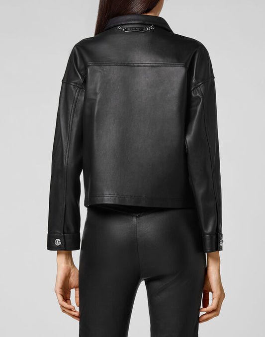 Women's Full Sleeve Leather Trucker Shirt In Black