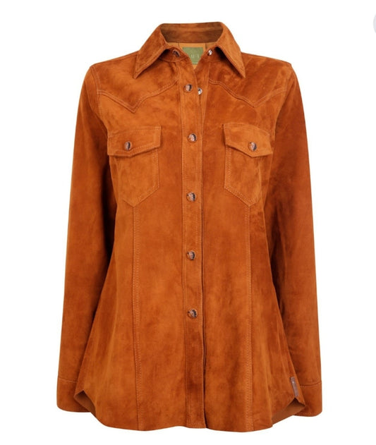 Women's Trucker Suede Leather Shirt In Dark Brown
