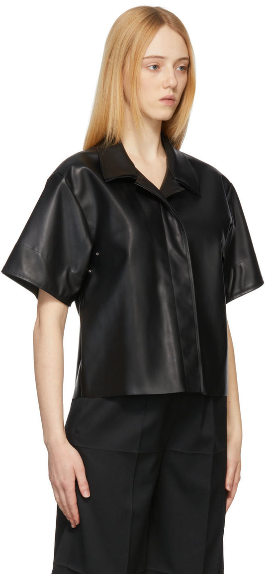 Women's Black Trucker Leather Shirt In Half Sleeve