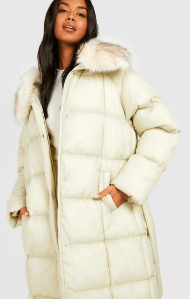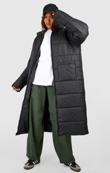 Women's Trench Puffer Oversized Coat In Black With Hood