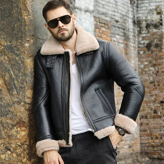 Men's B3 Shearling Biker Black Leather Jacket
