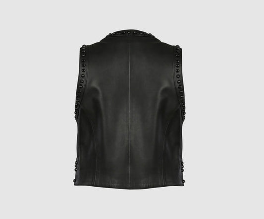 Women's Biker Shearling Leather Vest In Black With Belted Waist