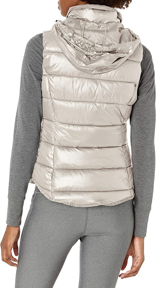 Women's Puffer Vest In Khaki With Removable Hood