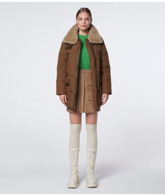 Women's Sheepskin Fur Leather Coat In Dark Brown