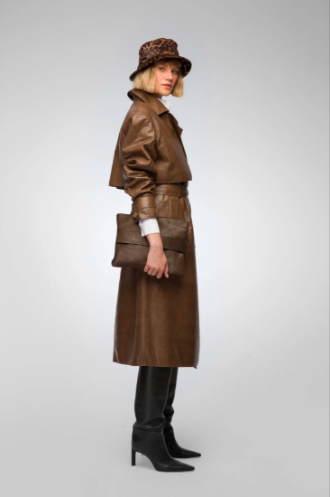 Women's Trench Leather Coat In Dark Brown With Belted Waist