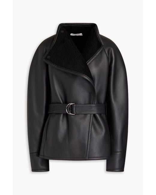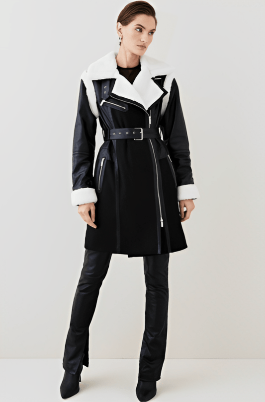 Women's Black Shearling Leather Jacket With Belted Waist