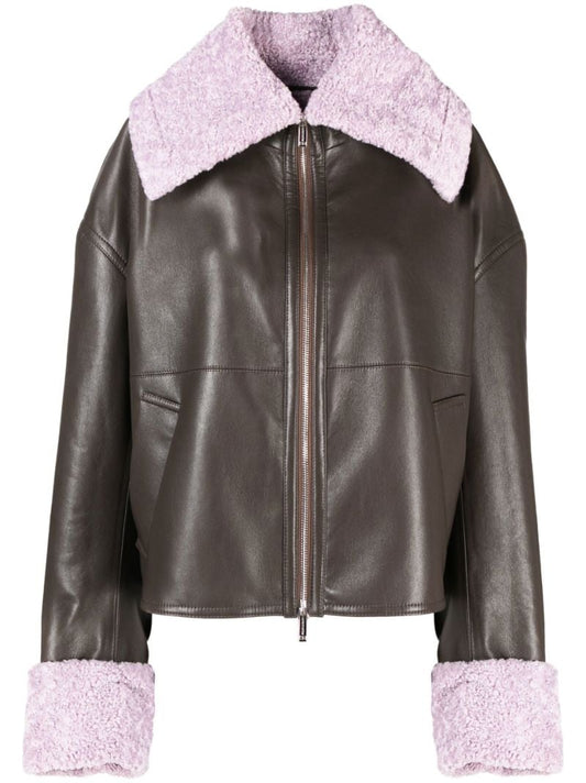 Women's Cropped Shearling Leather Jacket In Brown