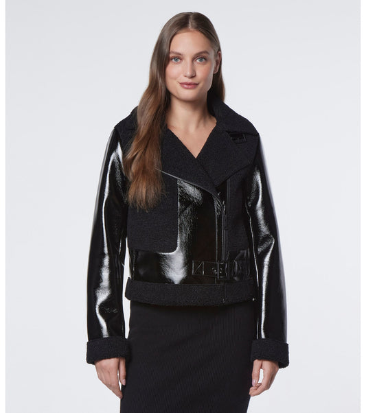 Women's Shearling Biker Leather Jacket In Black
