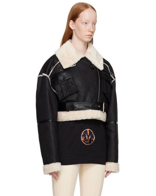Women's Cropped Shearling Leather Jacket In Black