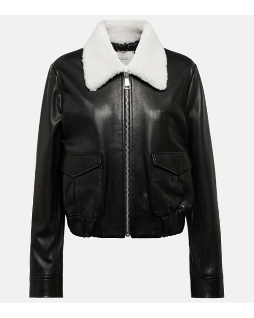 Women's White Shearling Leather Jacket In Black