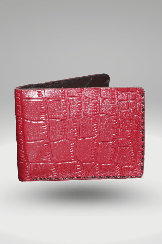 Men's Maroon Genuine Cowhide Leather Wallet With Crocodile Textured Finish | Bifold Hand-Made Leather Mini Wallet