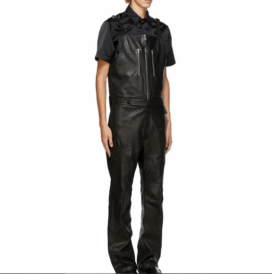 Men's Puffer Leather Vest In Black With Shearling Collar