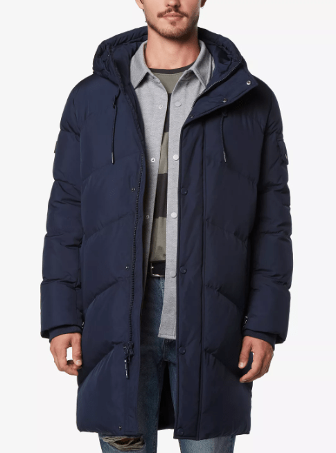 Men's Puffer Trench Hooded Coat In Royal Blue