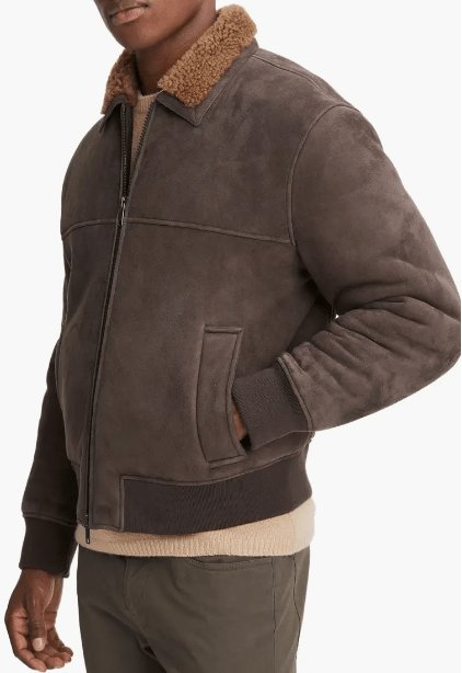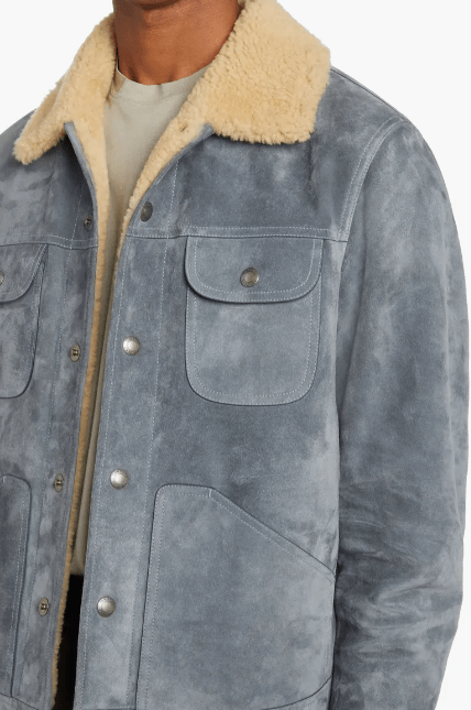 Men's Suede Trucker Shearling Leather Jacket In Sky Blue