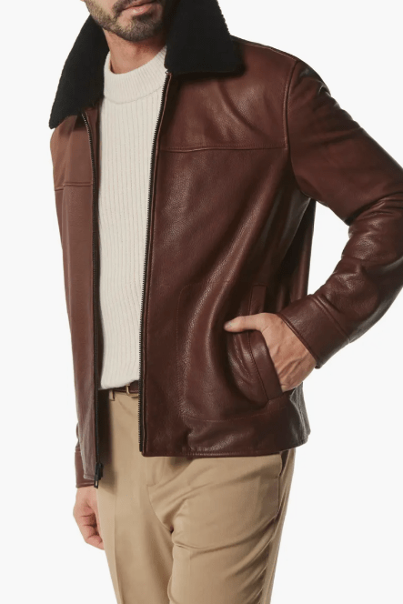 Men's Black Cafe Racer Biker Leather Jacket With White Straps