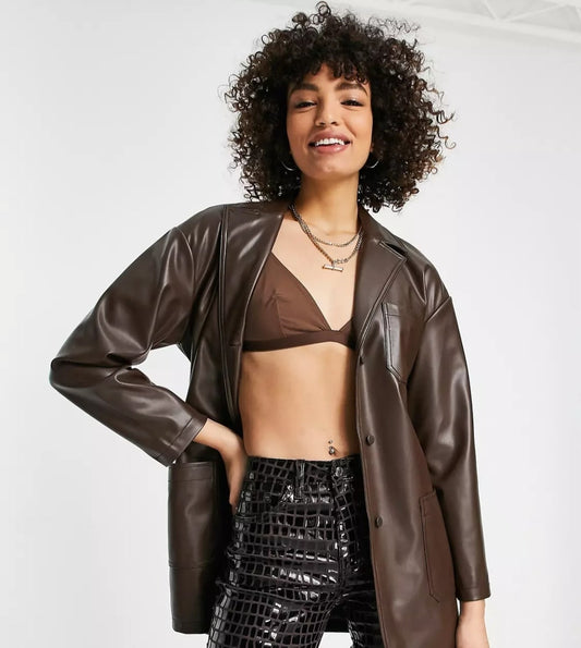Women's Chocolate Brown Leather Shirt With Gold Buttons