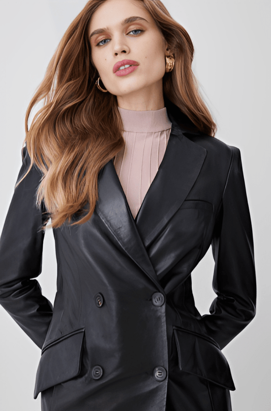 Women's Full Sleeve Leather Trucker Shirt In Black