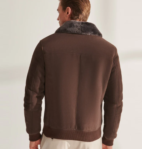 Men's Bomber Sheepskin Aviator Leather Jacket In Dark Brown