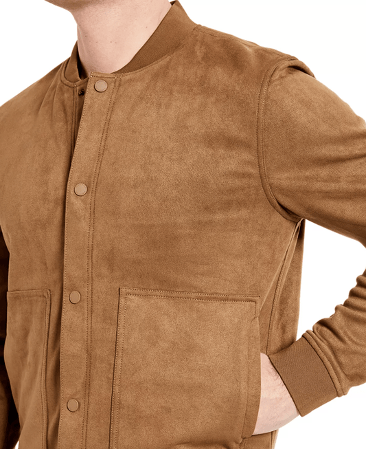 Men's Bomber Suede Leather Jacket In Tan Brown