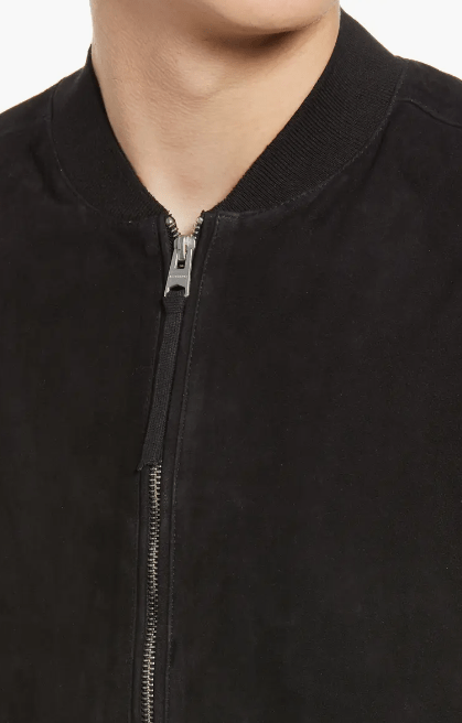 Men's Black Suede Leather Bomber Jacket