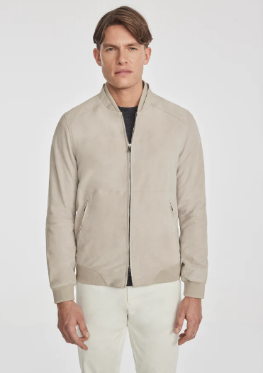 Men's Bomber Suede Leather Jacket In Off White