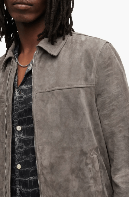 Men's Bomber Suede Leather Jacket In Gray