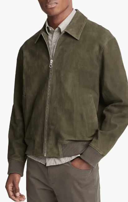 Men's Bomber Suede Leather Jacket In Khali