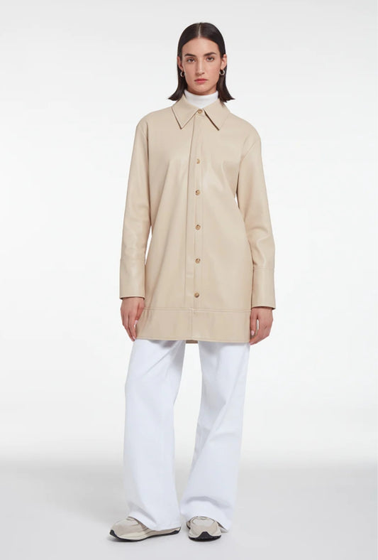 Women's Long Leather Shirt In Beige