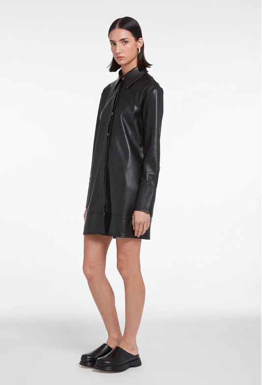 Women's Oversized Leather Shirt In Black