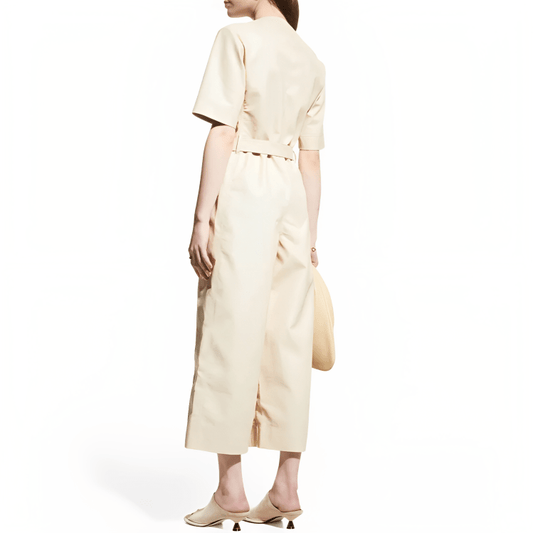 Women's Lounge Leather Jumpsuit In Beige With Half Sleeves